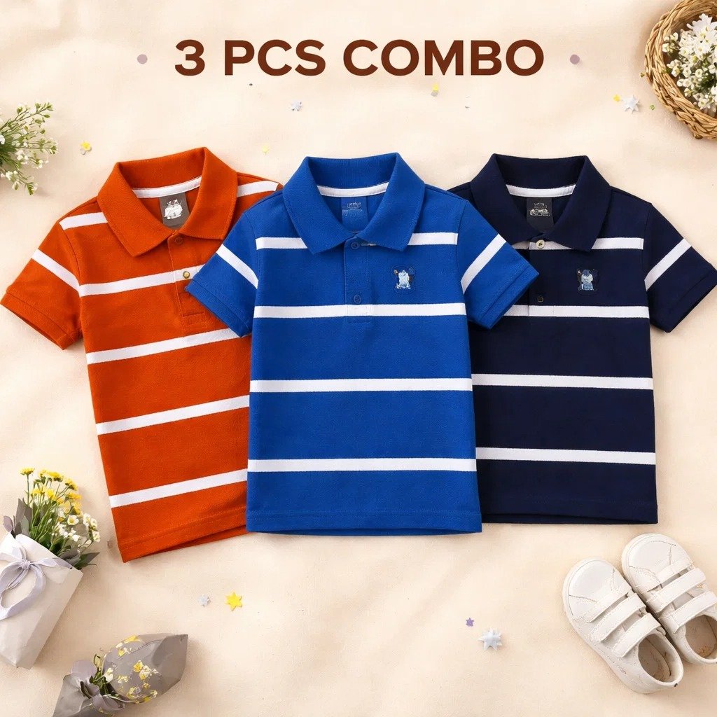 Cotton Polo T-Shirt For Kids (3 Pis Combo) Orange+Blue+Navy Blue