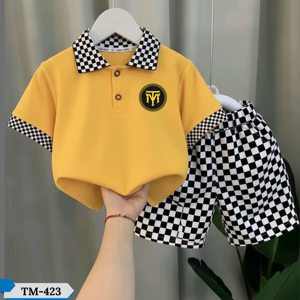 TM-423, Chess Yellow Cotton Polo T-Shirt Set For Kids